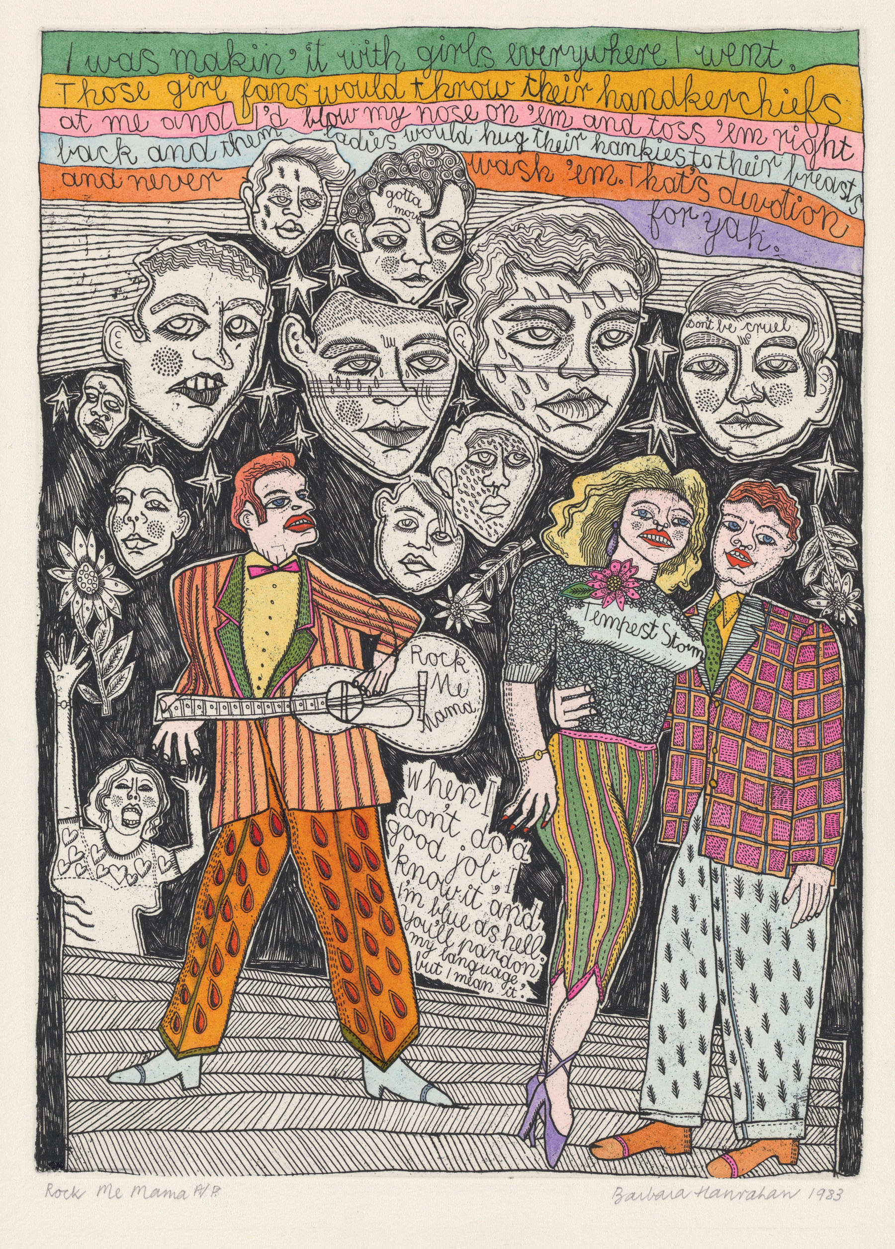 BSL p 1 – Rock me mama 1983, hand-coloured etching on paper Published 30 September 2021 at 1800 × 2510 in GUEST POST: Barbara Hanrahan and the art of unease