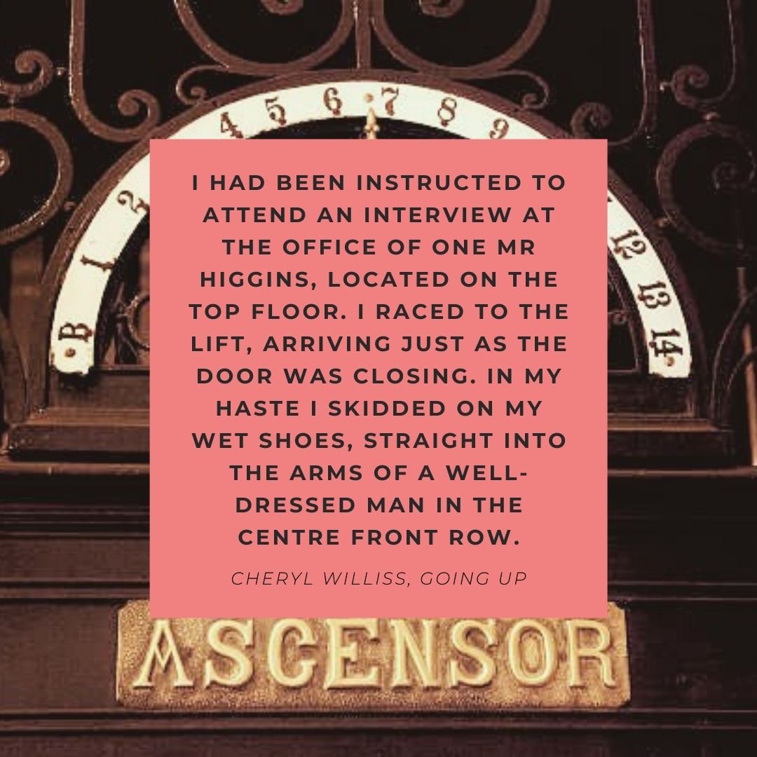 We’re pleased to announce the winner of the April WWWC: Cheryl Williss! Cheryl’s response to the prompt ‘I started a joke’ is a light-hearted tale of misfortune in an elevator. In Cheryl’s winning story, ‘Going Up’, a young woman rushing to a job interview runs into a strange roadblock.